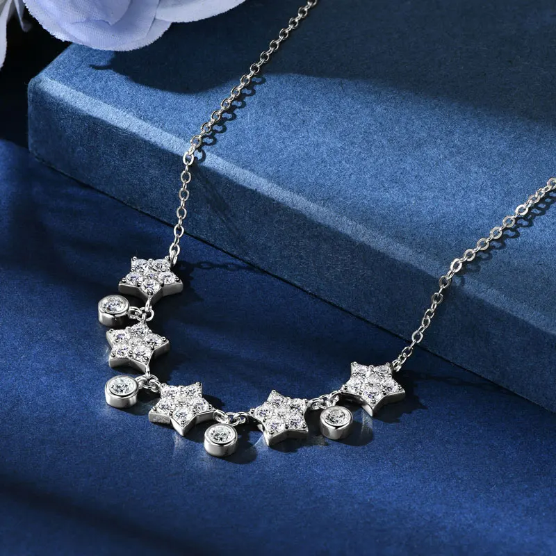 Collar de moissanita OXTAO U-Smile D VVS1 para mujer, color D, corte redondo, estrella de moissanita, plata de ley 925, certificado GRA
