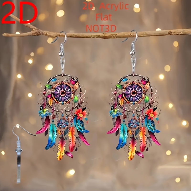 [Pendientes de plumas vibrantes] Pendientes colgantes de acrílico con plumas bohemias 2D vibrantes para mujer, planos 2D, livianos y duraderos: regalo perfecto para Halloween, Navidad, San Valentín, Día de la Madre, cumpleaños y uso diario.
