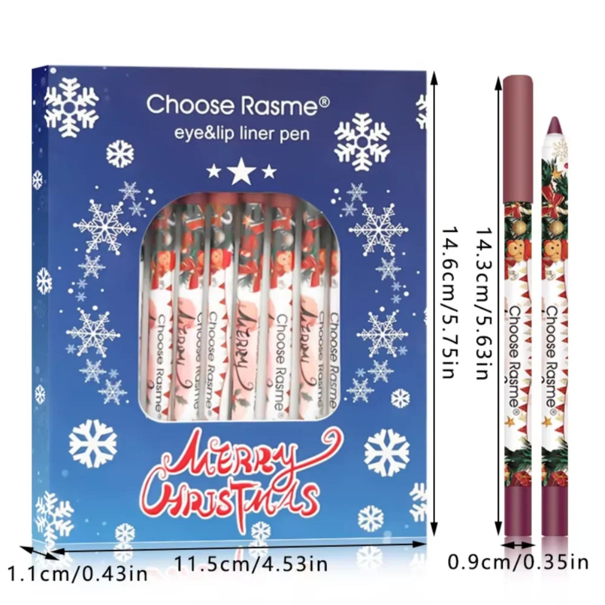 This festive 12-piece matte lipliner collection delivers professional-grade color payoff with a hydrating formula designed to last through holiday celebrations. Each full-size pencil glides smoothly for precise lip definition, offering rich pigmentation that resists fading throughout the day.