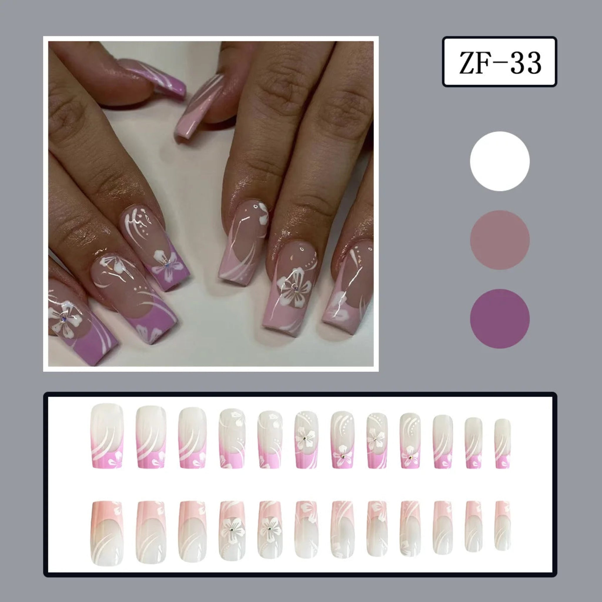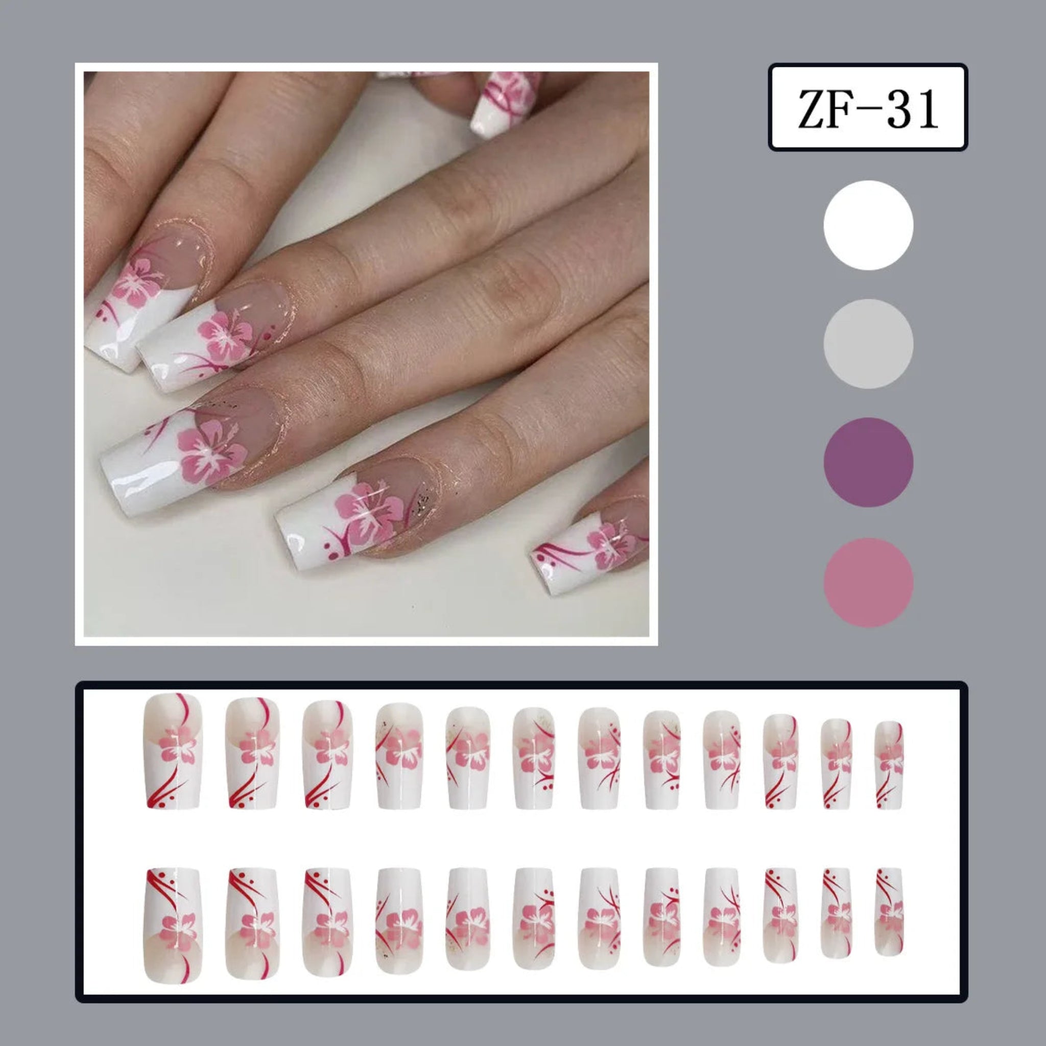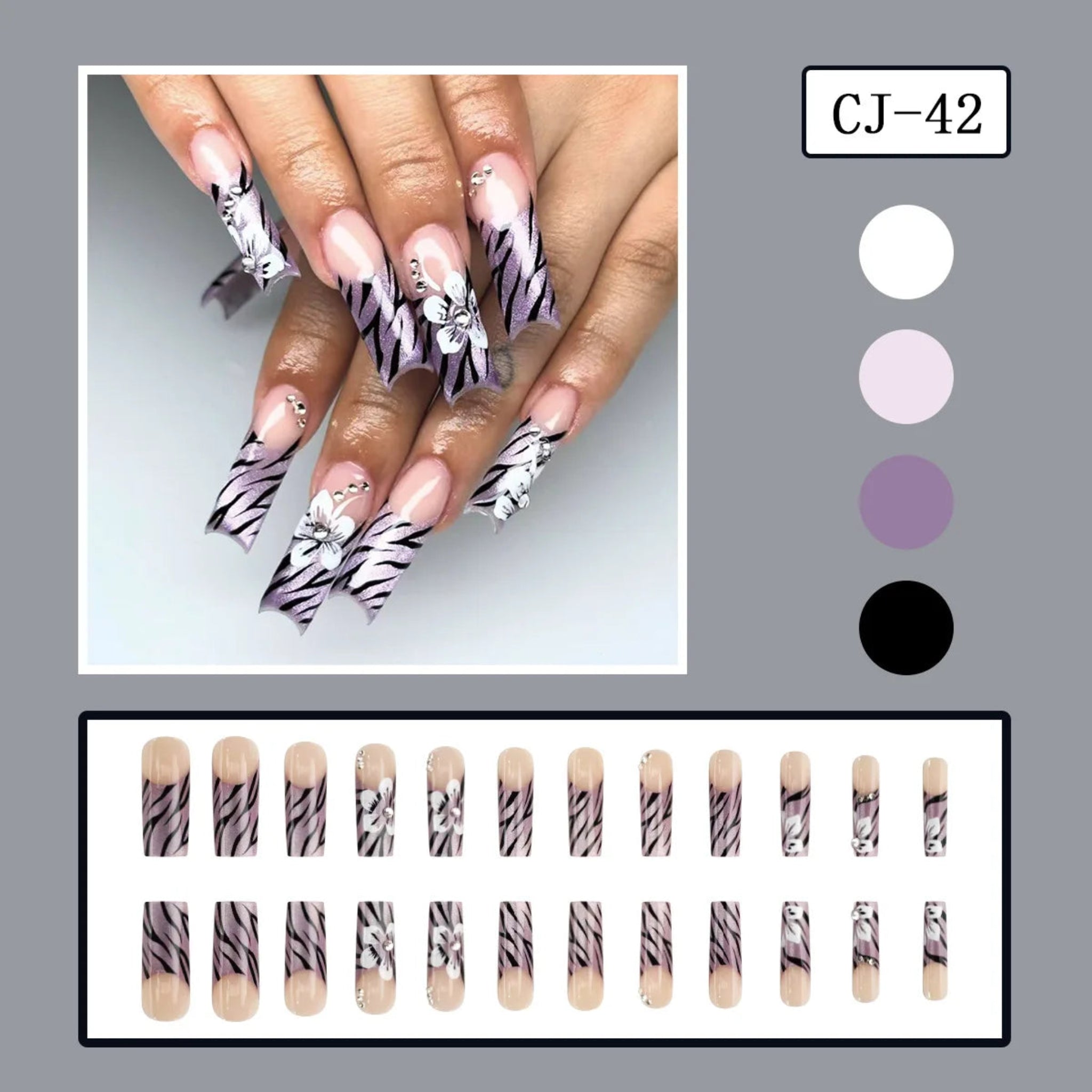 Transform your manicure with this 24-piece collection of European-inspired coffin press-on nails. Crafted from durable ABS material, these wearable nail tips feature stunning floral and leopard print designs with classic French styling. Each set delivers salon-quality results without the commitment, offering versatile options for any occasion. Simply apply and enjoy instantly polished nails that last.