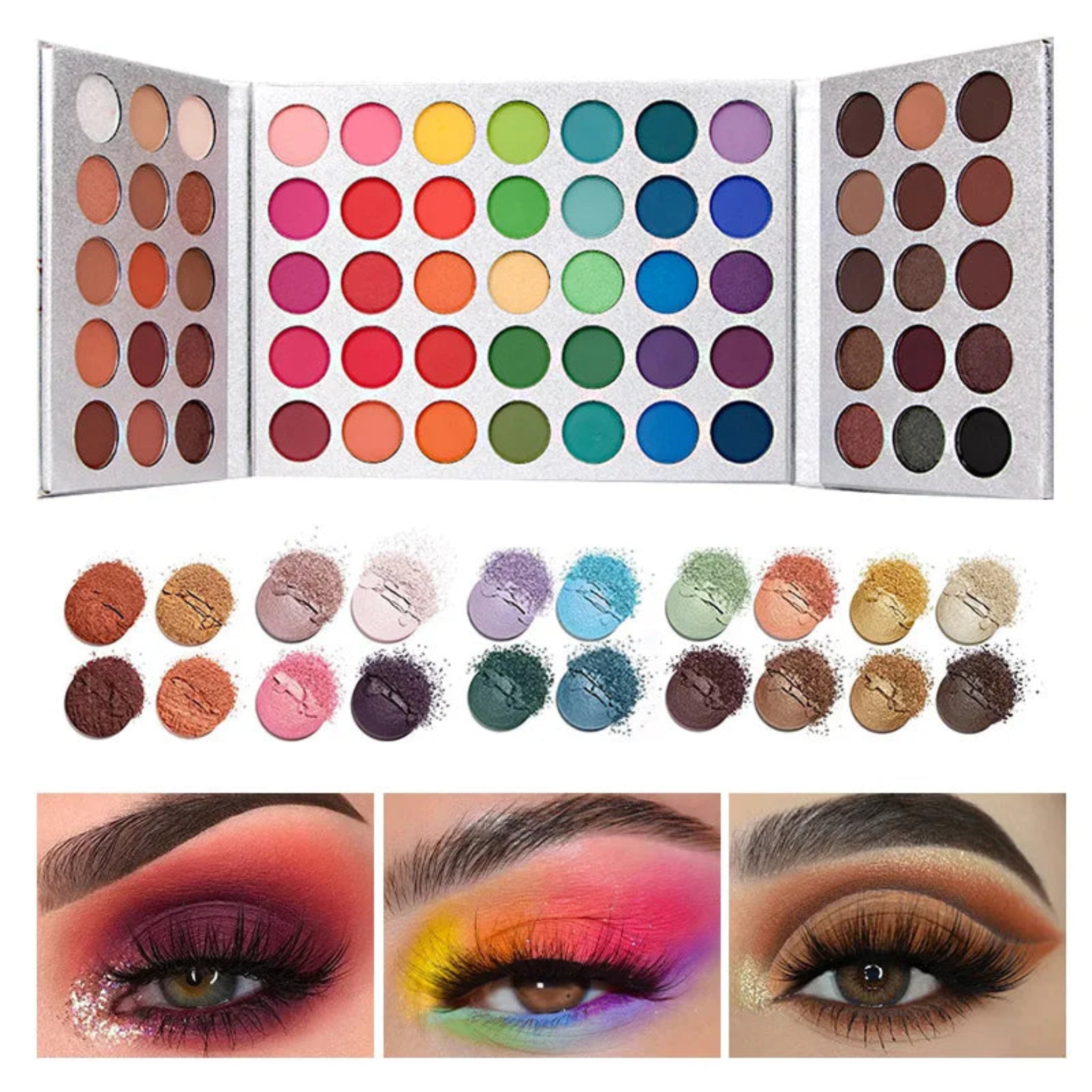 Transform your makeup collection with this comprehensive 65-color eyeshadow palette, engineered for endless creative possibilities. Each shade features a silky, finely-milled formula with rich pigmentation that adheres seamlessly to the eyelid for all-day wear. The palette combines matte and glitter finishes—including shimmering gold-plated particles that catch light like diamonds—allowing you to craft everything from subtle daytime looks to bold evening statements.