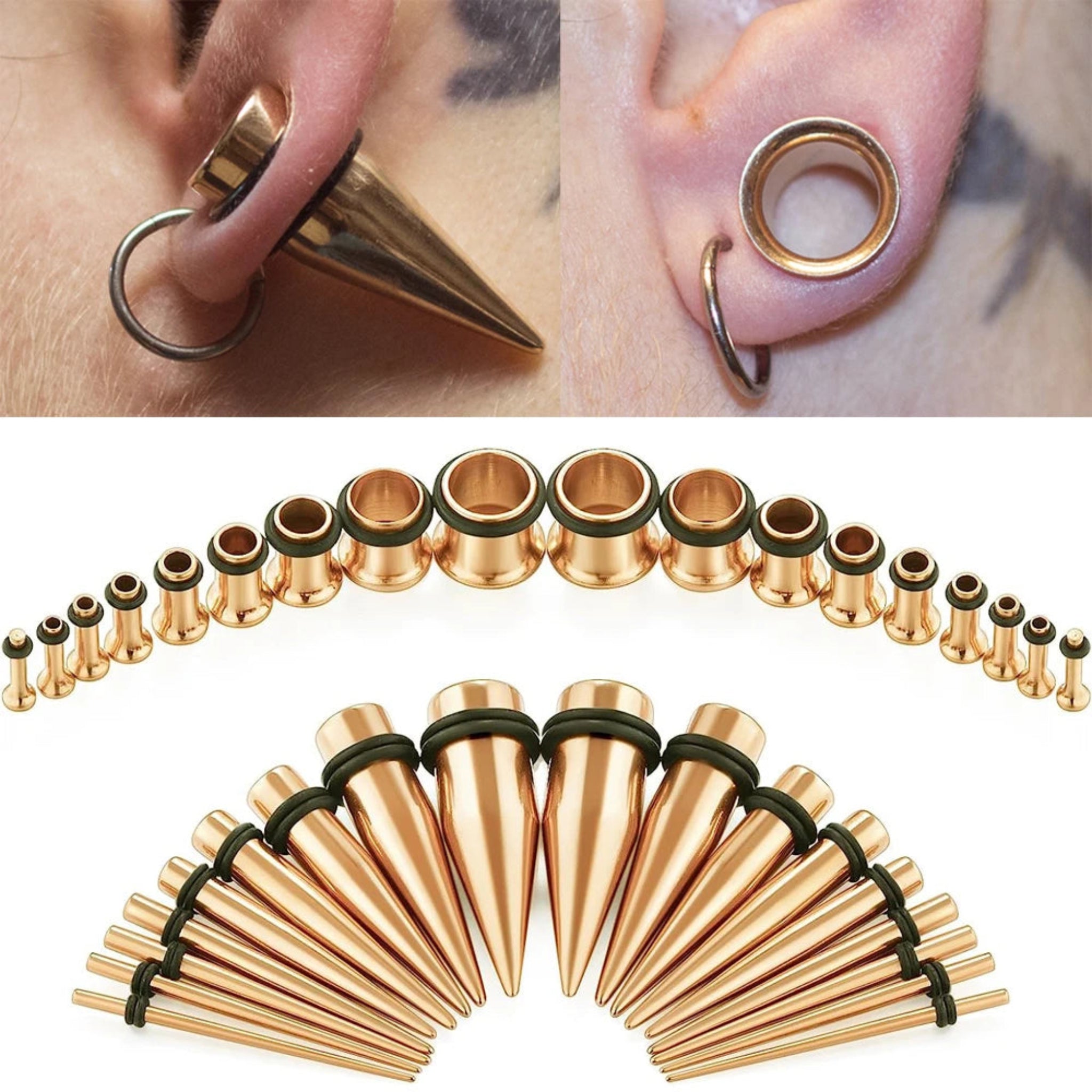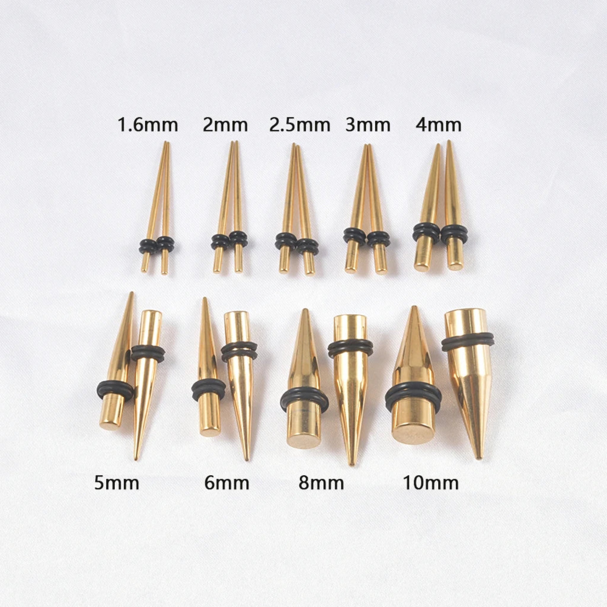Stainless Steel Gold Color Ear Taper Stretching Kit Gauge Expenders