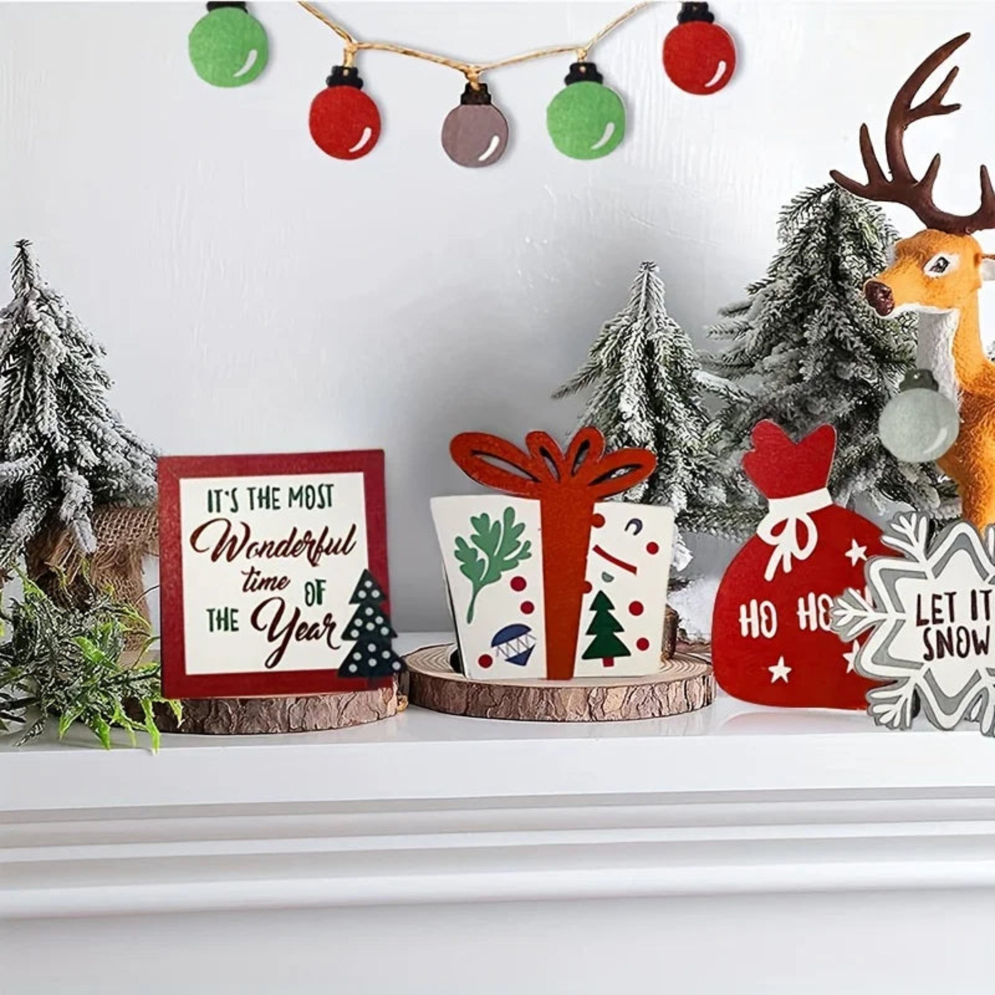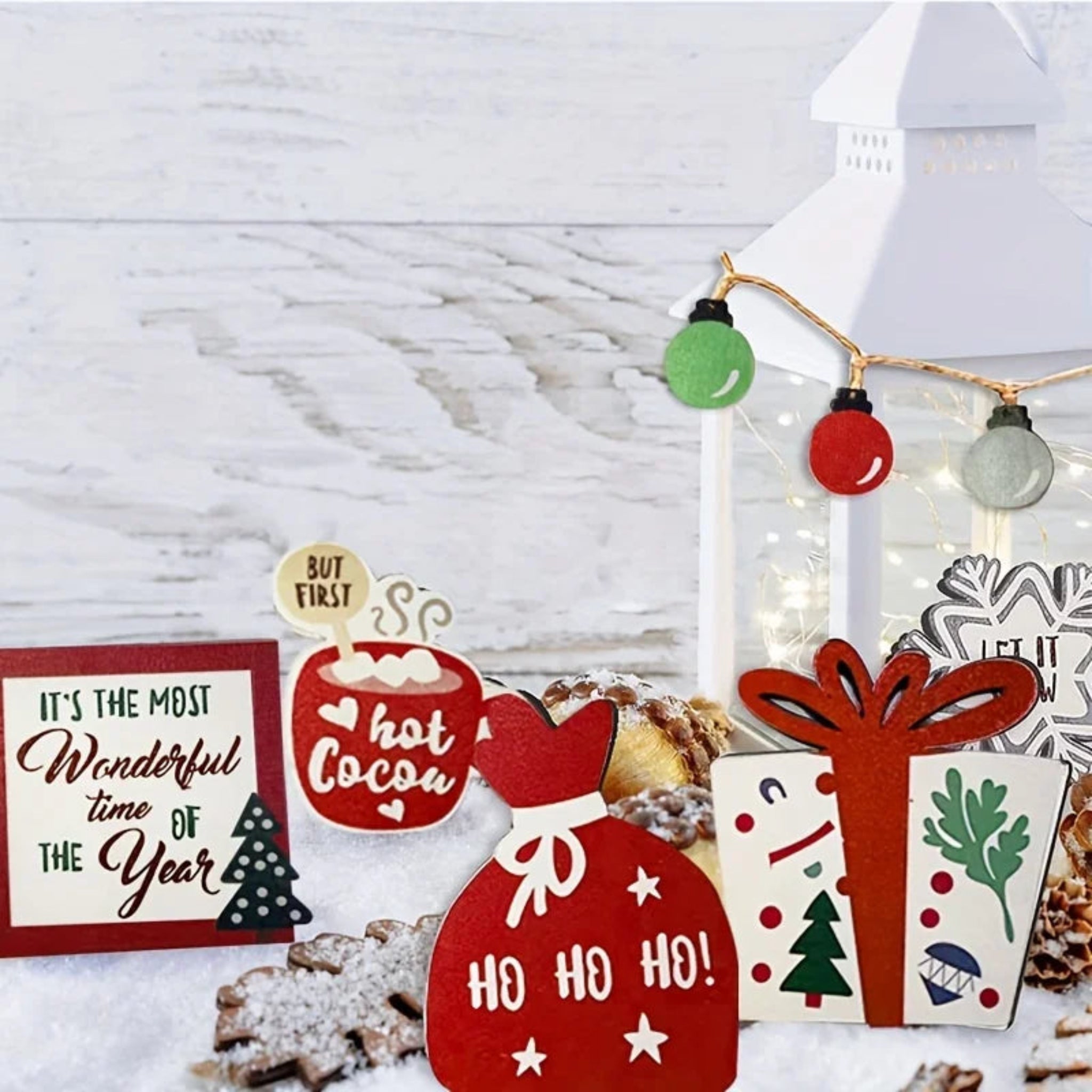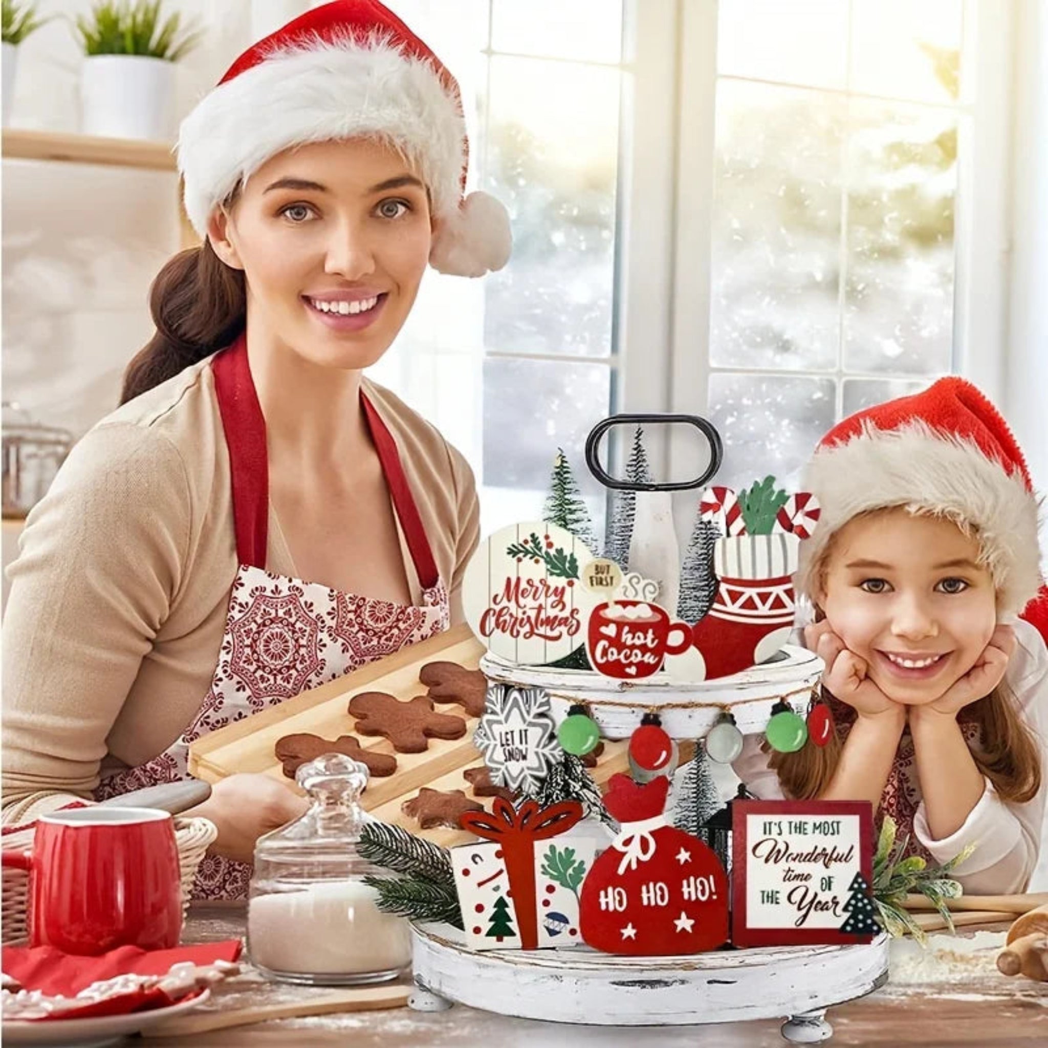 Christmas Tiered Tray Set Wooden Decoration Set Farmhouse Christmas Decor Bell Coffee Cup Snowflake Cookie Wooden Signs