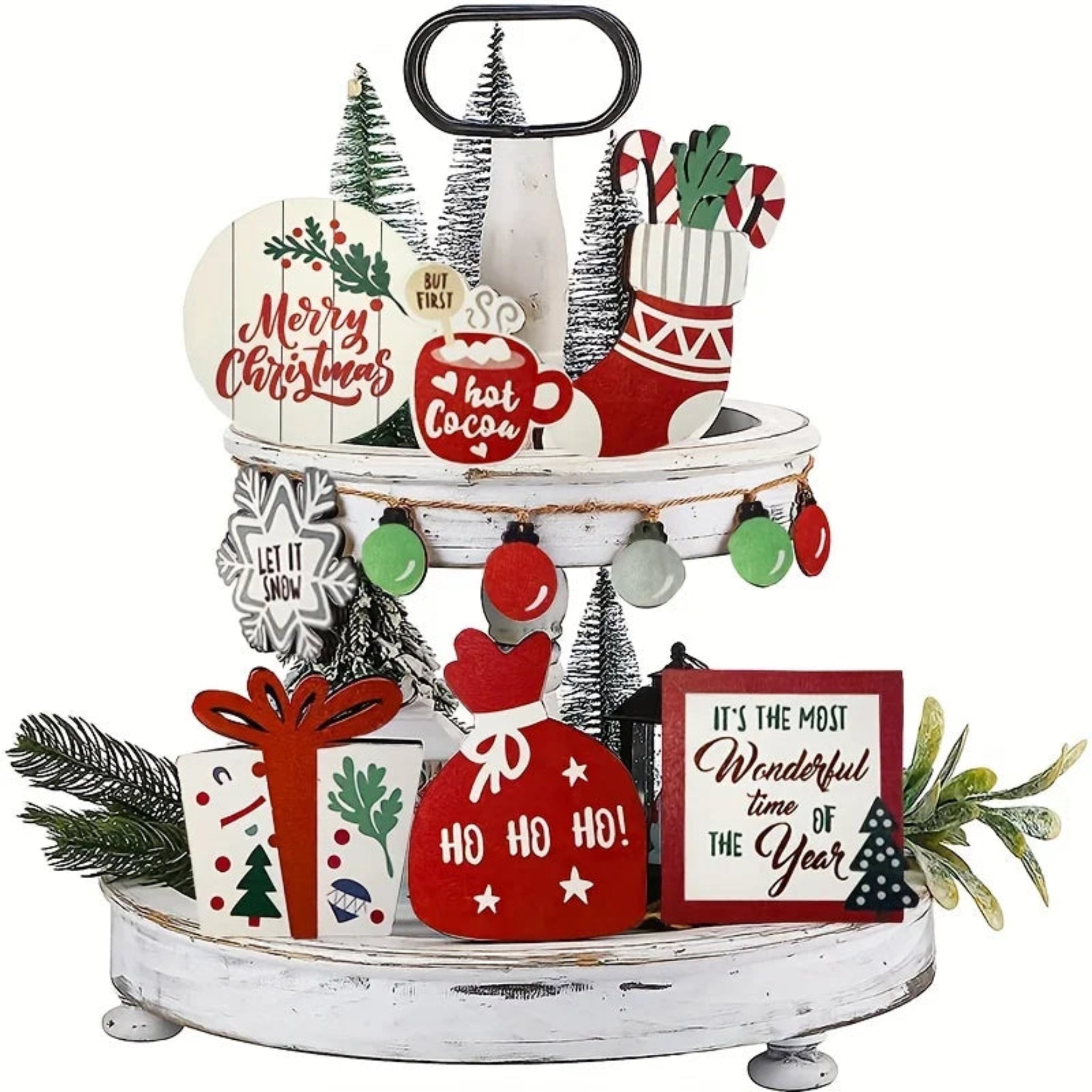 Christmas Tiered Tray Set Wooden Decoration Set Farmhouse Christmas Decor