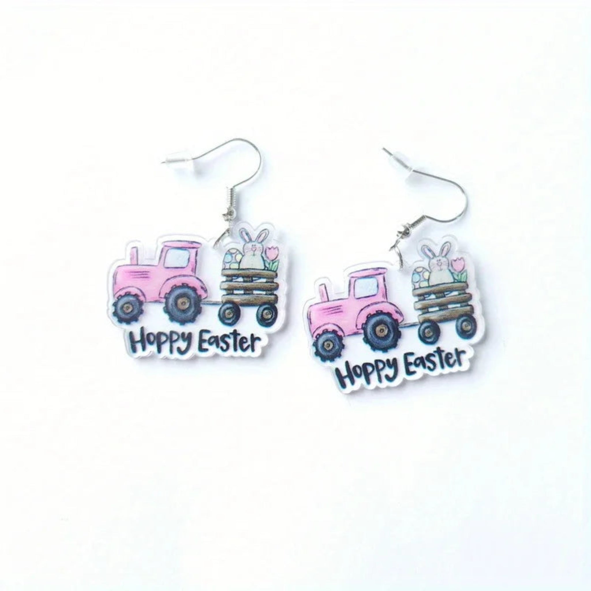 Cute Rabbit Easter Egg Carrot Truck Earrings Acrylic Cartoon Easter  Celebrate the season with these whimsical drop earrings... Read more Read more