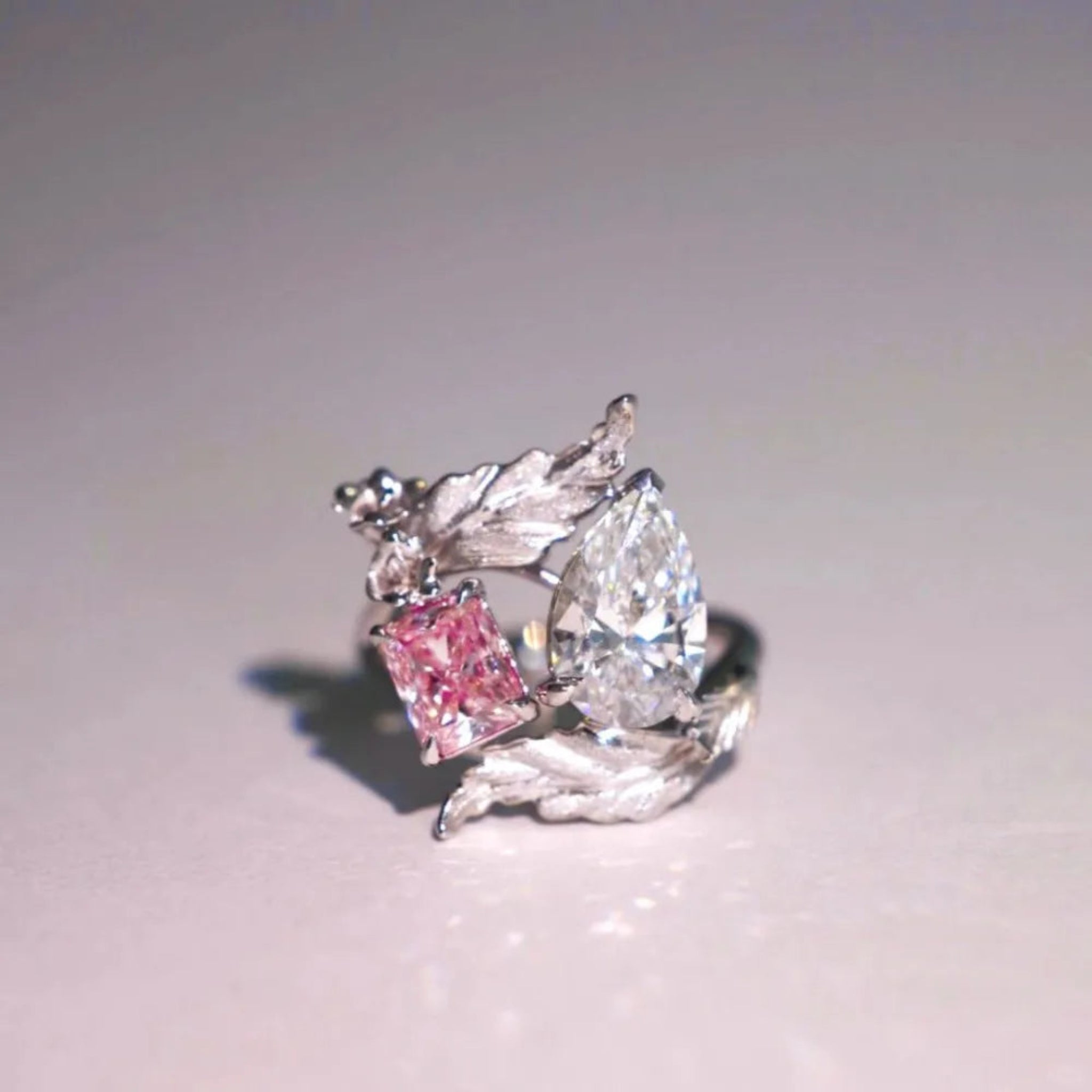 Delicate Pink Fall Leaf Micro-Paved Cubic Zirconia Gold Plated