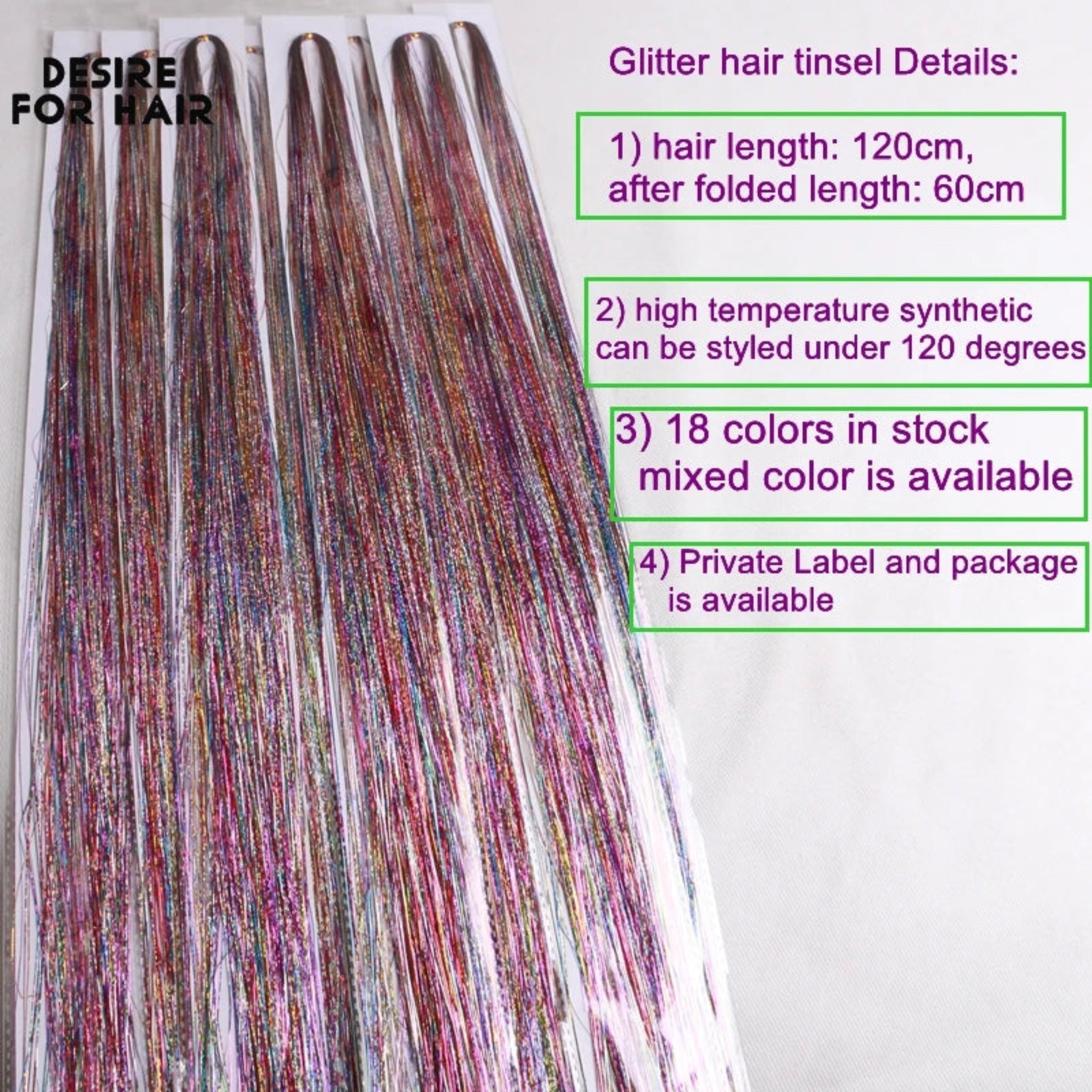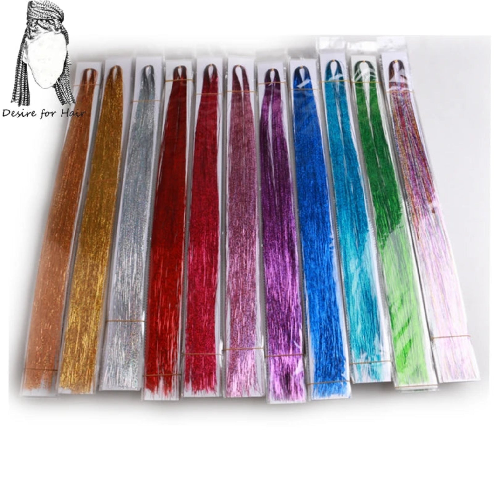 Desire For Hair Double Ends Hair Tinsel Glitter Bling Bling Sparkling Synthetic Braiding Hair Extensions 120cm for Celebration