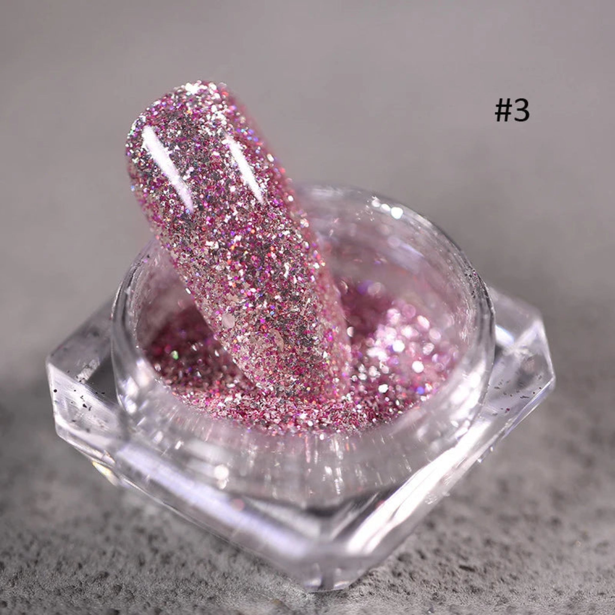 Transform your manicure with this premium chrome mirror powder collection featuring 50 stunning metallic shades. Each ultra-fine pigment delivers a flawless mirror effect that catches light beautifully, perfect for creating eye-catching nail art designs.