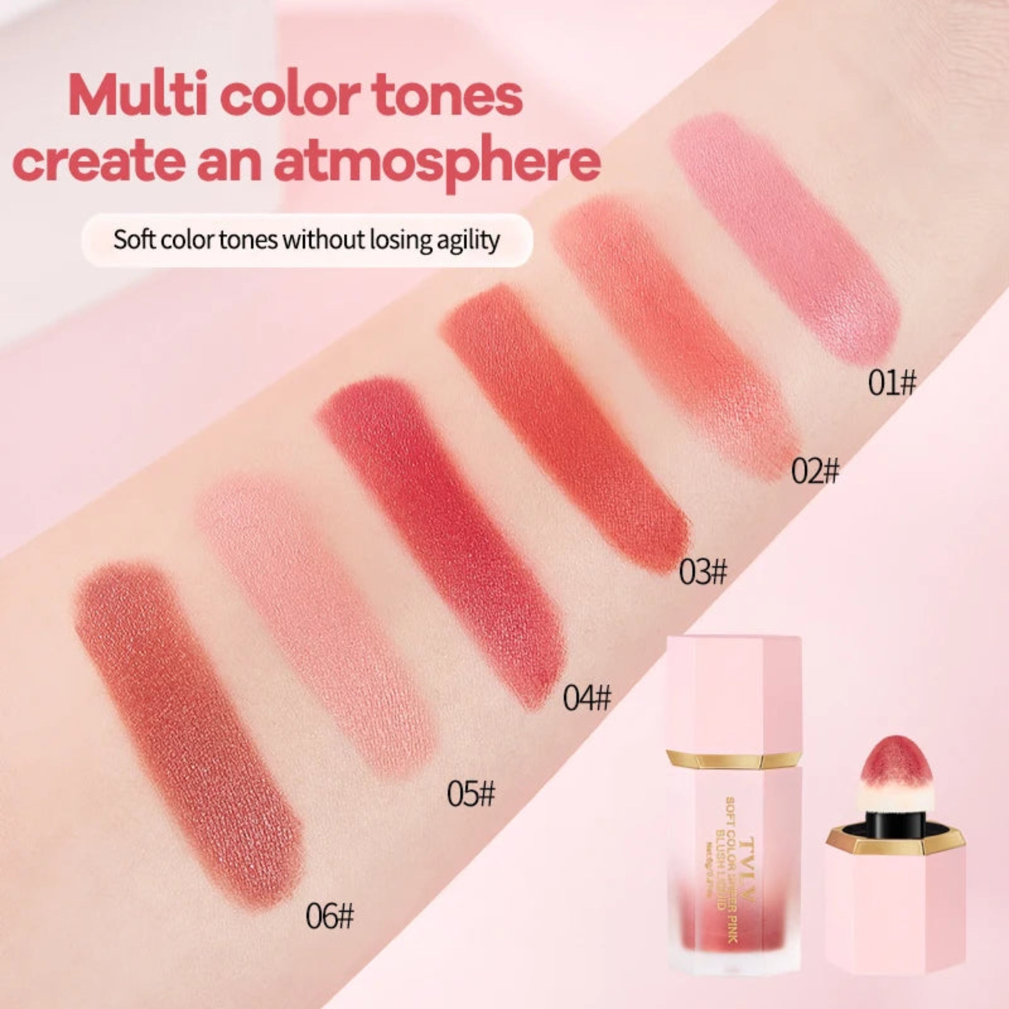 TVLV 4 Colour Matte Liquid BlushEasy to apply long lasting waterproof blush sponge brush head