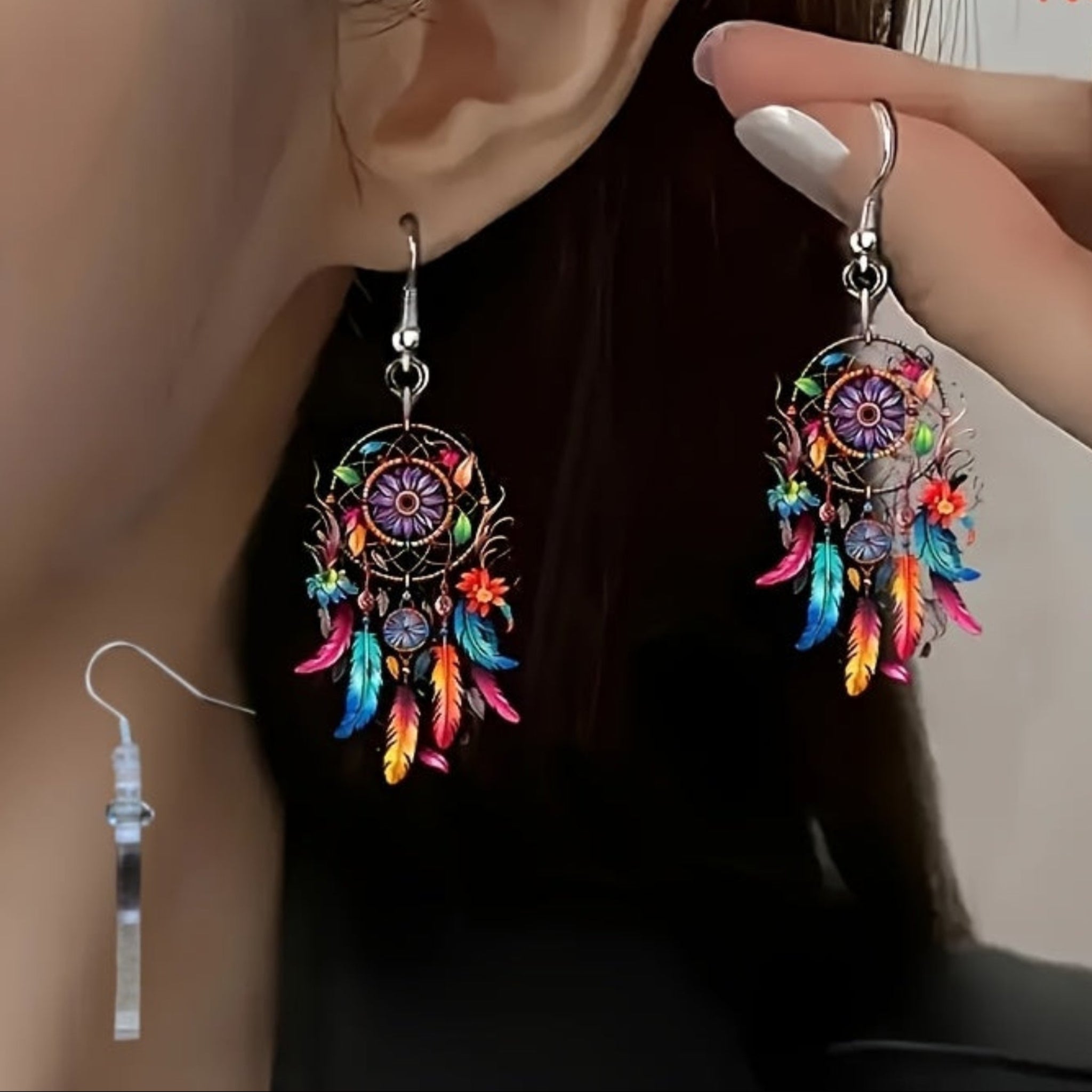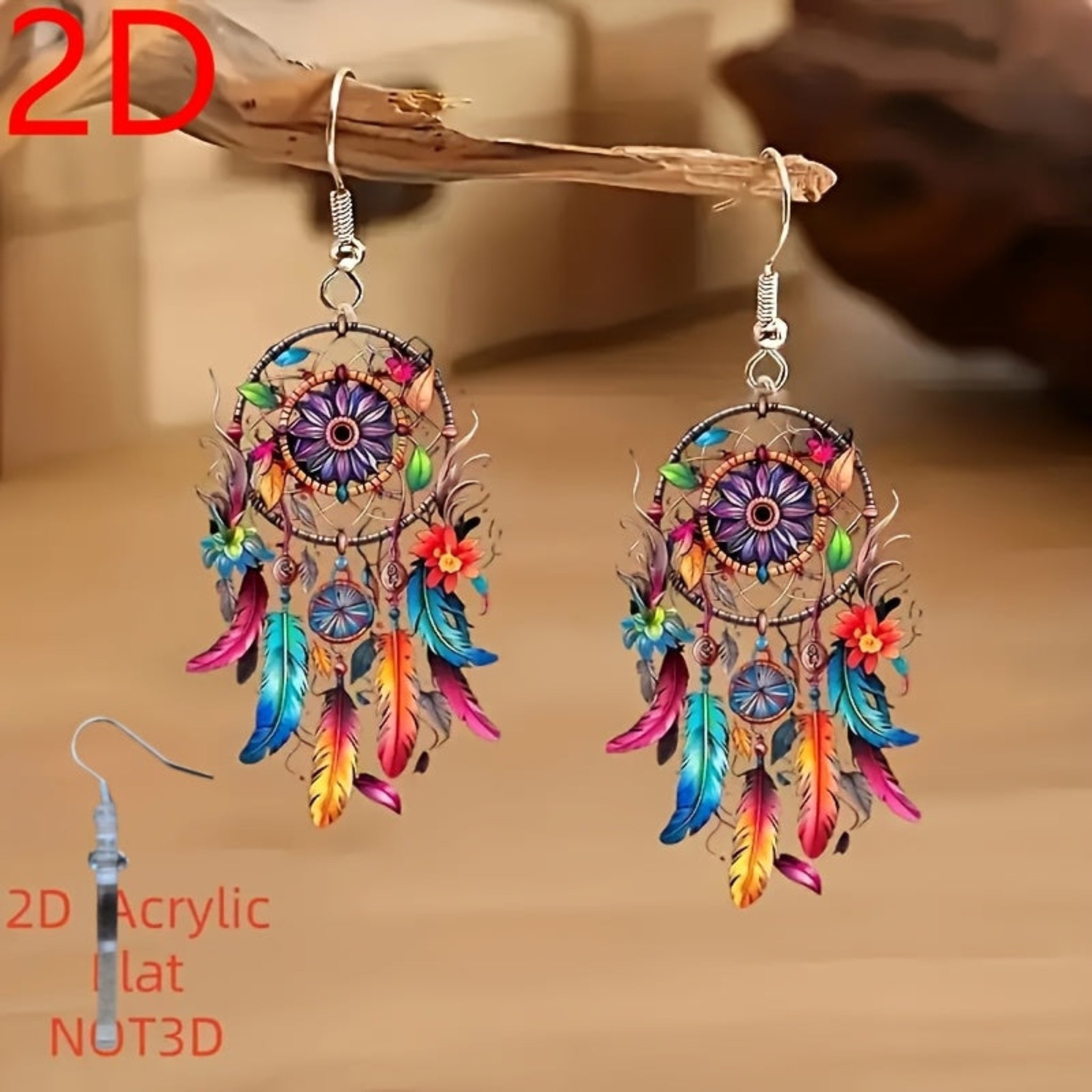 Vibrant Feather Earrings Vibrant 2D Bohemian Feather Acrylic Pendant Earrings for Women, 2D Flat, Lightweight Durable - Perfect Gift for Halloween Christmas Valentine's Mother's Day Birthdays & Daily Wear