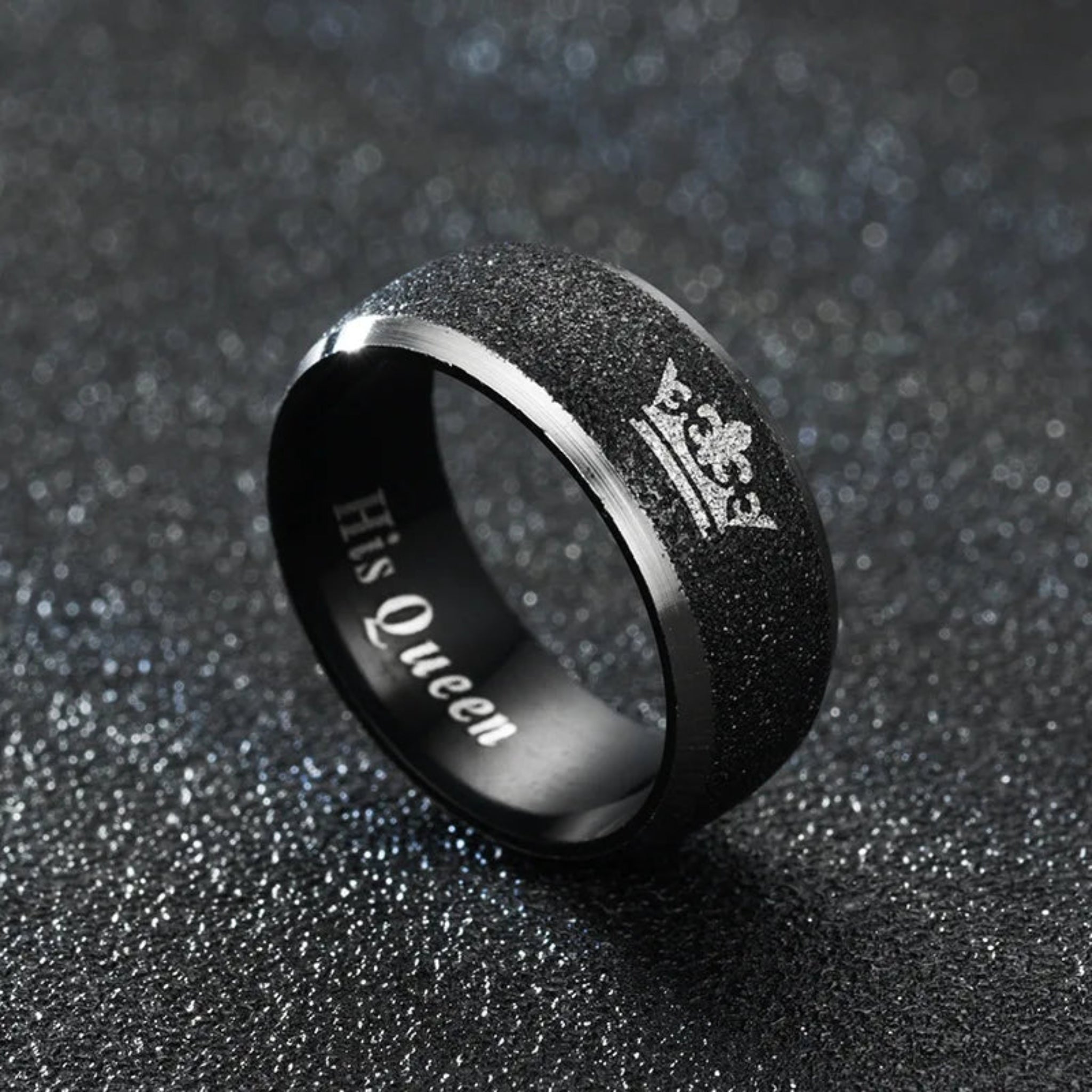 Her King and His Queen Letter Couple Rings For Women Men Crown Black 8MM