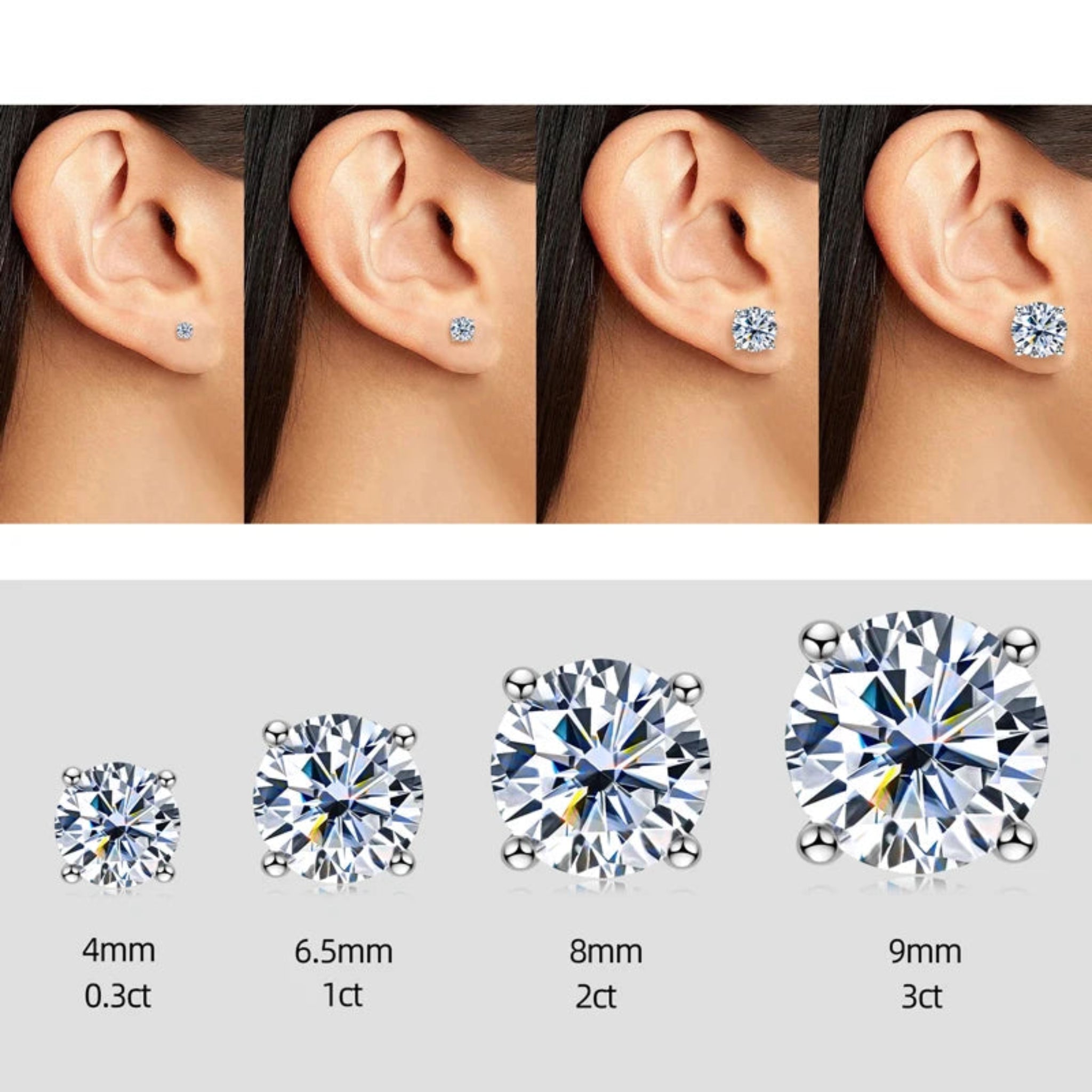 Elevate your jewelry collection with these certified D VVS1 moissanite stud earrings, crafted from authentic 925 sterling silver. Each pair features brilliant round-cut moissanite stones (1.0ct, 2.0ct, or 3.0ct options) that deliver exceptional sparkle and clarity comparable to fine diamonds. With D color grading and VVS1 clarity, these versatile studs transition seamlessly from everyday wear to special occasions.